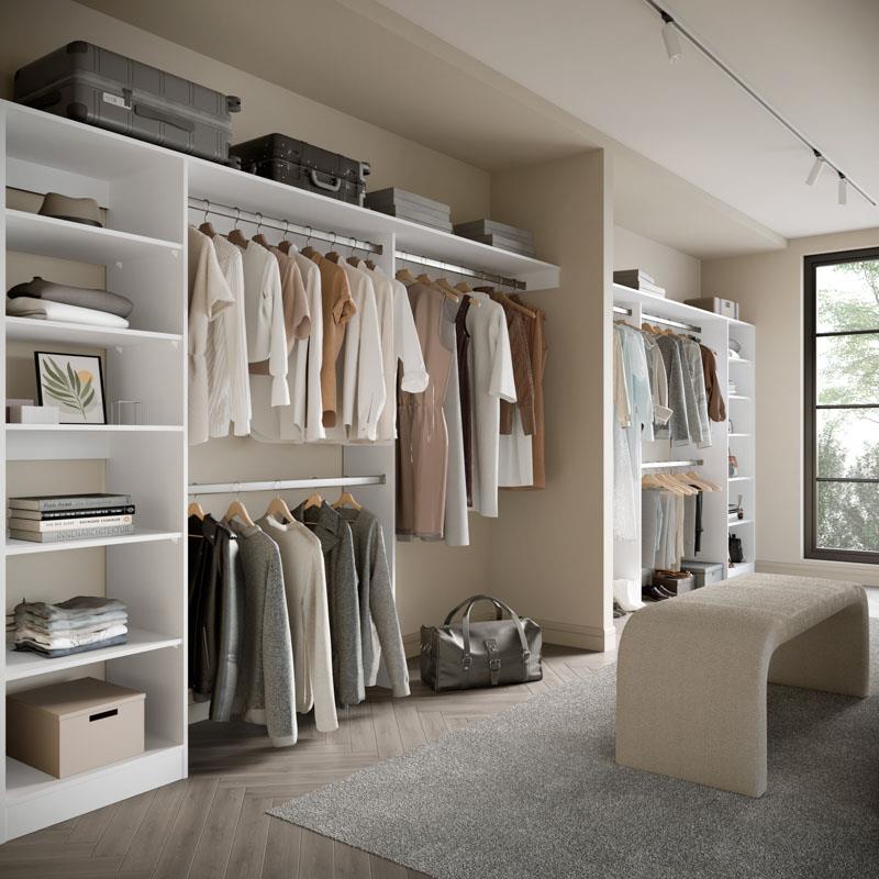 Enhance your organisation with the Galleria Wardrobe 4.0. Featuring adjustable shelves and both long and short hanging space, it accommodates various clothing items, from jackets and shirts to long dresses.