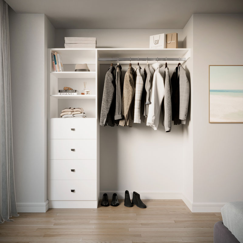Choose from four on-trend colours and nine handle options. The reversible design adapts seamlessly to your space. With four drawers, adjustable shelves, and spacious long hanging, it's perfect for your long dresses, suits and more. Elevate your storage with Galleria BIR4.9.