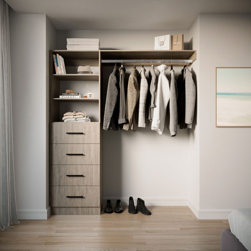 Choose from four on-trend colours and nine handle options. The reversible design adapts seamlessly to your space. With four drawers, adjustable shelves, and spacious long hanging, it's perfect for your long dresses, suits and more. Elevate your storage with Galleria BIR4.9.