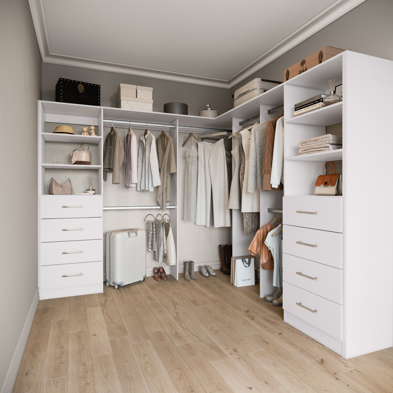 Transform your bedroom into a sanctuary of order and sophistication with Stegbar's L-Shaped Walk-In Wardrobes. Experience the perfect combination of practicality and luxury, tailored just for you.